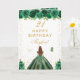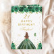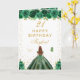 Cette carte d'anniversaire élégante et glamour peut être personnalisée avec un nom ou un titre comme fille, petite-fille, nièce, ami etc. Le design présente une belle princesse aux cheveux roux brun et à la peau claire dans une robe de boule verte. Le texte combine écriture manuscrite et polices sans serif modernes pour un look élégant et sophistiqué. Les compositions florales, les papillons et les confettis d'or créent un mélange parfait de rustique et de chic. Graphiques par www.etsy.com/uk/shop/SunflowerDayLove