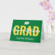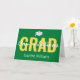 Simple jeu sur mots félicitations carte de voeux diplômé. Cette carte de remise de diplômes présente un casquette, l'année de classe, son nom et le mot "félicitations" dans les couleurs de l'école, vert, jaune et blanc.