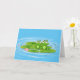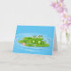 Paire de grenouilles vertes sur le pavé de nénuphars avec la fleur de lotus et l'eau ondulée pour l'anniversaire