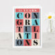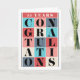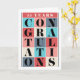 Il s'agit d'une carte du 15e anniversaire de l'employé avec le mot "FÉLICITATIONS" en noir, et avec chaque lettre dans un carré séparé dans une grille horizontale 3 x verticale 5. Les couleurs sont turquoise, bleue, pêche foncée et claire, beige. En haut de la conception est le nombre d'années en texte blanc fixé contre un arrière - plan de pêche foncé. Conception par NATALIE KINNEAR