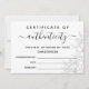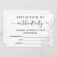 Certificat d'authenticité minimaliste chic en noir et blanc avec fleurs grises dessinées à la main et verdure à laquelle vous pouvez ajouter votre nom ou nom d'entreprise. Imprimé sur une carte de 5 po x 7 po.