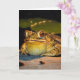 Gros plan photo macro d'un gros crapaud vert et jaune sur un tabouret dans un étang sur le point de croquer