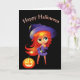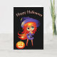 La carte de voeux est affichée avec une imprimé de sorcière mignonne d'Halloween. Customisez cette carte ou achetez tel quel.