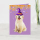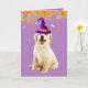 Carte d'Halloween mignonne et colorée avec un chiot de récupération d'or et quelques friandises spéciales à l'intérieur. Personnalisez le message et créez votre propre plaisir ! Merci de chercher ! Graphiques sous licence.