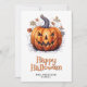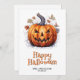 Bonne carte Halloween avec un citrouille éffrayant aux feuilles d'automne.. Personnalisez facilement cette carte d'Halloween avec votre nom de famille et votre texte.