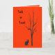 This Halloween card fea black cat under a bar black tree looking right out at you against a brillant orange background. L'image est repeated inside. Tout est customizable.