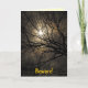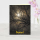 Cette carte d'Halloween présente un ciel nocturne mystique. L'air est imprégné de brume. La pleine lune qui brille à travers les arbres illumine les nuages brumeux dans des tons dorés, jaunes oranges, blancs et marrons et forme un motif abstrait intéressant. Le texte dit : Attention. Les bois sont hantés ce soir. Il peut être customisé pour répondre à vos besoins.