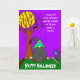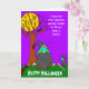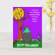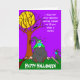 Dessin amusant d'une sorcière qui a écrasé son balai dans un arbre alors que ses lunettes sont cuites à la vapeur parce qu'elle porte un masque. Carte topique à envoyer pour Halloween.