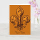 Si vous voulez autre chose que des citrouilles, des fantômes, des vampires et des sorcières pour Halloween, essayez une fleur de lis gothique orange doré sur une carte personnalisée.
