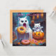 Carte Halloween joyeuses - Cute Kitten et Ghost mangent