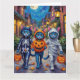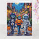 Carte Halloween Orientale Bleue Chats Trick-or-Treating