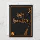Un design minimaliste de goth orange et noir avec les symboles hantants d'Halloween, un croissant de lune, un crâne et un balai de sorcière. Pour ce tour d'Halloween spécial ou de traiter cadeau ou fête d'Halloween. Entrez dans l'esprit éffrayant avec notre carte de voeux Halloween Trick ou Treat! Ce cadeau festif est parfait pour les fêtes d'Halloween.