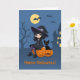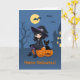 Carte Halloween Witch, Black Cat, and Curved Pumpkins