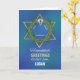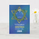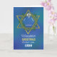 Envoyez des salutations Hanoukka à votre fils avec cette étoile dorée de David sur un arrière - plan bleu et vert de type aquarelle. Une couronne encercle l'étoile. Customisez avec son nom pour une touche personnelle. (L'étoile d'or est numériquement créée.)