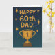 Celebrate your MVP! This striking birthday card features hand-lettered “HAPPY 60th, DAD!” in rich gold with a #1 trophy and star accents on a deep navy gradient—clean, modern, and made to make him feel like a champion.