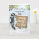Celebrate a meaningful 80th birthday with this bird-themed greeting card featuring a hand-painted Downy Woodpecker mid-tap on a rustic wooden Happy Birthday sign. Rendered in watercolor and pen, the illustration captures a peaceful outdoor moment filled with texture, movement, and quiet charm—perfect for honoring a milestone that reflects experience, growth, and appreciation for life’s simpler joys.