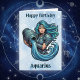A fun horoscope sign Aquarius birthday card Inside says the dates and traits of an Aquarius and a sweet birthday message. The graphics have a beautiful woman carrying a container of water as Aquarius represents the water bearer.