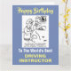 Say Happy Birthday to a Driving Instructctor - Funny Card shows a Driving Instructctor giving Driving Lessons to a woman, first showing her how to the door.