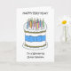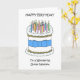 A simple illustration of a white birthday cake, decorated with lit candles on top and a blue bow tied arund it. The image is set against a white background and accompanied by the words 'Happy Birthday to a wonderful great nephew'.
