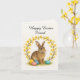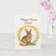 Happy Easter Friend > Watercolor Rabbit & Forsythia Wreath Card (Editable Template)