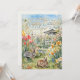 This greeting card showcases a watercolor illustration of a spring flower garden, gazebo, and two rabbits. It includes a sophisticated gold holiday greeting. The flat holiday card features an Easter message on the reverse, along with a signature line for personalization. Specifically designed for family use, this Easter card allows for customized text. This versatile template image can be applied to other products as well.