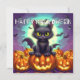 Cette carte Halloween Happy unique présente un chat super mignon assis sur des citrouilles fraîchement récoltés. N'hésitez pas à ajuster toutes les options disponibles comme vous le souhaitez.