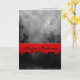 Carte Halloween Happy personnalisée avec des lettres de script grungy contre une barre oblique rouge dégoulinant contre un ciel éffrayant avec des arbres brumeux le long d'une route obscurcie, corbeaux gothiques et une pleine lune nuageuse.