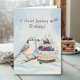 Created to celebrate a 40th birthday in January, this card captures a peaceful winter moment with a Red-breasted Nuthatch gently helping decorate a vanilla cake topped with blueberries and raspberries. Hand-painted in watercolor and pen, it blends nature, warmth, and artistic detail to mark a meaningful milestone.