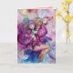 Clown rose, coloré, capricieux, drôle jouant du bugle avec un hibou expressif et des notes musicales joyeuses, fleurs, feuilles en rouge vif, fuchsia, violet, violet, bleu, couleurs blanches, aquarelle de Bulgan Lumini (c)