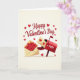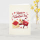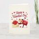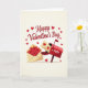This greeting card features a sweet Valentine’s Day scene on a light cream background. At the top center, the text reads “Happy Valentine’s Day” in red flowing letters, with small red hearts scattered around it. On the left, an open golden envelope tips forward and lets a stream of rounded red hearts pour out, as if love is spilling into the air. On the right, a cherry-red mailbox stands upright with its flag raised, ready to send a note. A beige envelope with a single red heart seal peeks out from the mailbox opening, hinting at a message meant for someone special. Soft shading and gentle shadows give the envelopes, hearts, and mailbox a little depth while keeping the look simple and warm. It feels like a friendly reminder to send a little extra care and kindness this time of year 💕