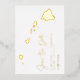 Annoncez votre date de mariage à votre famille et amis avec ce thème d'état Hawaii enregistrer la date annonce. Il présente une illustration de la carte d'Hawaï, une simple typographie et un script manuscrit. Personnalisez en ajoutant les noms, la date, le lieu et d'autres détails. Cette feuille d'or enregistrer la carte de date est parfait pour tout thème mariage.