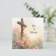 Celebrate the hope and renewal of Easter with this beautifully illustrated Christian greeting card. Featuring a wooden cross adorned with spring flowers and lilies, set against a soft sunrise sky, this watercolor design reflects the peace, faith, and promise of the resurrection.