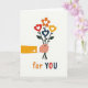 This design shows a stylized hand reaching in from the left, dressed in a golden-yellow sleeve with a white cuff, offering a bouquet that feels like a sweet, close-up gesture 🥰. Set on a bright white background, the bouquet sits centered so the hand and flowers become the whole focus, like a moment paused between two people. The blooms are mostly warm shades—deep red, marigold orange, and golden yellow—and each flower has a crisp white heart shape in its center ❤️. One navy-blue flower with the same white heart adds a cooler accent among the warm colors, with dark stems and small leaves keeping the arrangement grounded. The simple shapes and light texture make the bouquet look gently tactile, as if you could almost feel the paper cutouts. Near the bottom, the words “for YOU” are placed as a clear anchor, with “for” in orange and “YOU” in red and navy to match the flowers. The bouquet fans upward in rounded petals and heart centers, while the dark stems gather neatly toward the hand at the lower left.
