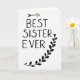 This card features a simple black-and-white design that puts the message front and center. On a white background, the words “BEST SISTER EVER” are written in black, with a casual hand-drawn look and slightly uneven lines. The text sits in the middle of the card, and a small black arrow above the word “BEST” points upward, like a little nudge of emphasis. Along the right side, a black vine curves from the upper-right down toward the lower-right corner, with leaf shapes spaced along a thin stem. At the top of the vine, one leaf is shaped like a small heart, adding a sweet touch ❤️. With just black ink on white, it feels direct and sincere, making it easy to say what you mean without overdoing it. It’s a meaningful way to show affection and appreciation for a sister who feels like a true friend 🥰. Hope it helps you share Valentine’s Day sentiments in a warm, simple way.