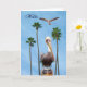 Beau Pélican avec palmiers et une mouette volant au-dessus. Carte de voeux pour toute occasion vous pouvez la customiser. avec vos propres paroles d'Elenne Boothe