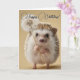 Un gros plan incroyablement mignon et charmant d'un minuscule hérisson debout sur ses pattes arrière, tenant une grosse tête de graine de pissenlit duveteuse avec l'une de ses pattes. Le hérisson a une expression douce et innocente, et le fond doux et neutre met en valeur ses traits délicats et ses piquants épineux.