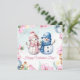 Une simple carte d'heureuse Sainte-Valentin avec un mignon couple de bonhomme de neige (une fille et un garçon) entouré de fleurs roses d'aquarelle. Thème hiver. Modifiez à l'aide de l'outil de conception pour déplacer/redimensionner les éléments de cette conception et en faire votre propre.