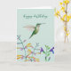 Birthday card featuring a hand-painted hummingbird and flowers. The inside is left empty for your own handwritten message.