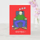 Dessin d'un papa endormi dans son fauteuil. Il y a un verre de vin vide à ses côtés. Les mots "Happy Fête des pères" sont écrits en chinois sous l'image. L'image est positionnée contre un arrière - plan rouge.