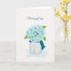 "Penser à vous" avec une illustration d'hydrangée d'aquarelle — habillé dans un bocal de verre relié par un ruban turquoise foncé; à l'intérieur : Envoyer des voeux chauds à votre façon; par Sheri42