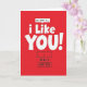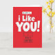 This card has a solid deep red background that sets a warm, romantic mood right away ❤️. Near the center, big white text says “i Like YOU!” in casual, slightly uneven block letters, with an exclamation point that makes it feel excited and direct. At the top, a white speech bubble shows “OK, i ADMIT IT….” in a hand-drawn style that looks a little shy, like someone working up the courage to speak. Along the bottom, two black-outlined boxes add more hand-written notes: first an underlined “i,” and then “REALLY LIKE YOU!” in a scribbly, personal look. The mix of neat block letters and rough handwriting makes the message feel like it’s building from a quiet confession to a stronger statement 💌. With its simple layout and strong color contrast, the card keeps your focus on the words and the feelings behind them. It’s a sweet choice for telling a crush, partner, or close friend exactly how you feel 🍫.