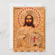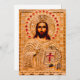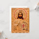 Jésus Christ en métal doré orné de pierres rouges. Tenue d'un livre avec croix rouge. Fermez la photographie.