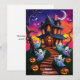 Explorez cette magnifique illustration d'Halloween qui présente une maison hantée éffrayante sous une lune de croissant, entourée de citrouilles et d'un chemin mystérieux. Parfait pour les amateurs d'Halloween !