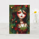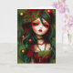 Illustration de Noël gothique au houx, carte de vœux créée par Ricaso - une illustration d'une fille gothique aux cheveux verts avec du houx et des baies. Une œuvre d'art saisissante pour la période des fêtes.