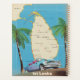 Carte illustrée du Sri Lanka (plus les îles environnantes) dans un beau style vintage et détaillé, décoré d'un vieux autombile.