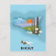 Carte illustrée Sicile poster voyage