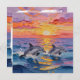 A pretty thinking about you friendship card with impasto style dolphins swimming with a pink, orange and purple sunset over the ocean on the front and a nice thinking about you poem on the inside wishing someone a peaceful day.