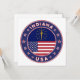 Badge de l'Indiana avec drapeau de l'Indiana et drapeau des couleurs des Etats-Unis, forme arrondie. Emblème de l'Indiana. Sceau de l'Indiana. Collection USA Etats. Indianapolis, Fort Wayne, Evansville, South Bend, Carmel, Fishers, Bloomington, Hammond, Gary, Lafayette