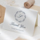 Cette élégante carte de remerciements de mariage est ornée d'une couronne de feuillage bleu indigo entourant une première écriture monogramme. Les mots "Merci" apparaissent dans le script bleu indigo. Ajoutez les noms de la mariée et du marié ci-dessous en indigo.