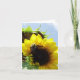 Une abeille démontre l'industrie patiente de son espèce lors d'un tournesol par jour d'été brillant. Eclairer la journée de quelqu'un, vous-même, avec cette carte chaude !
